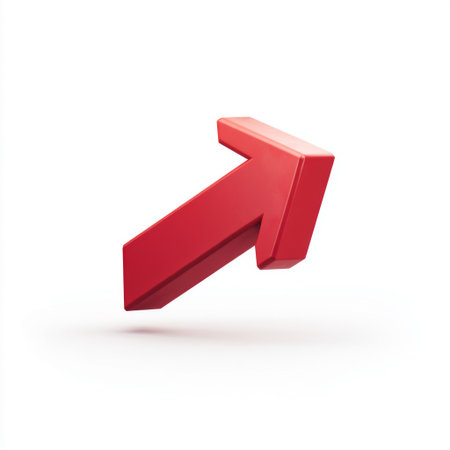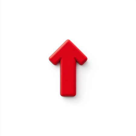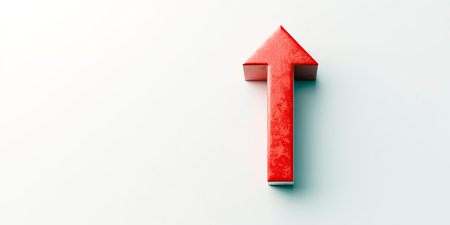 A striking 3D rendered red arrow pointing upwards against a clean white background. Ideal for representing concepts of growth, success, and positive direction in graphic designs.