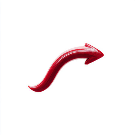 A striking curved red arrow symbolizing direction and movement, ideal for use in business presentations and marketing materials to indicate growth and trends.