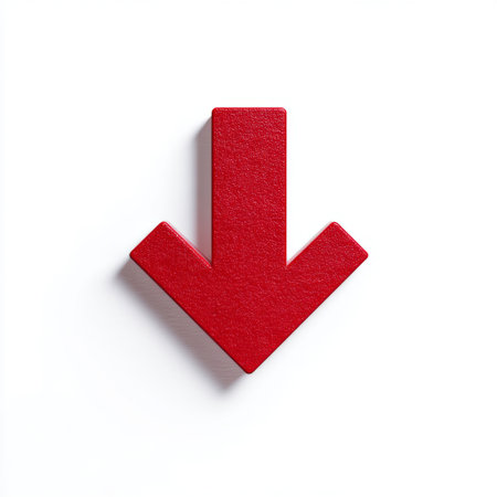 A bright, textured red arrow on a clean white background. This visual element effectively indicates direction, progress, or important information for various concepts and ideas.