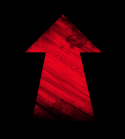Red arrow tire marks on a black background