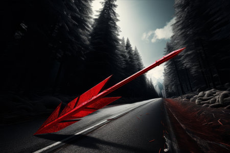A striking image featuring a vibrant red arrow accompanied by black lines, set against a soft blue background, representing direction and growth.