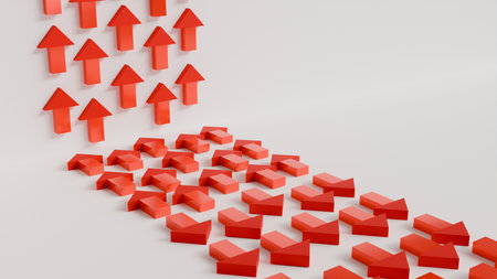 In a world of conformity, a single red arrow boldly points in the opposite direction.