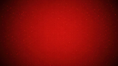 A close-up view of a vibrant red background texture. The image showcases a rich, deep red color with a subtle, fine fabric-like weave visible across the surface. A soft vignette darkens the edges of the image, drawing focus to the brighter central area. Tiny, randomly scattered light specks add a layer of detail and depth, resembling fine dust or a sparkling effect. This abstract background creates a feeling of warmth, passion, and intensity, suitable for various graphic design projects, presentations, or website backgrounds.