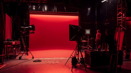 TV studio with lighting equipment, equipment and lighting equipment on stage, Generative AI illustrations.