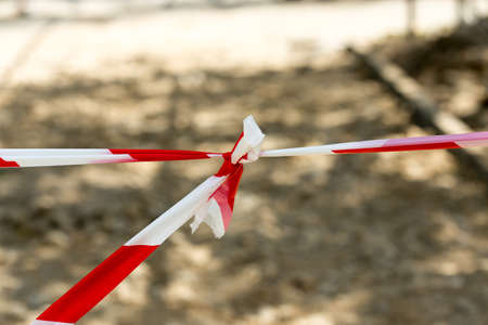 limited ban tape red and white color around sport playground area outside space unfocused background