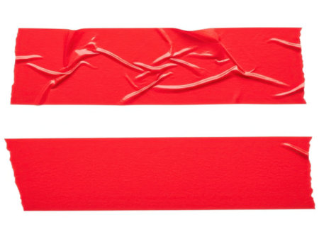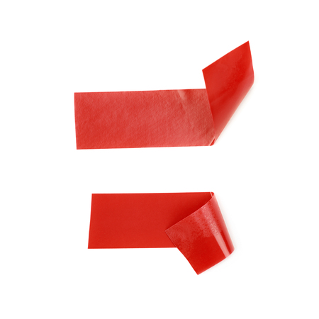 Double sided adhesive tape in red color on white background