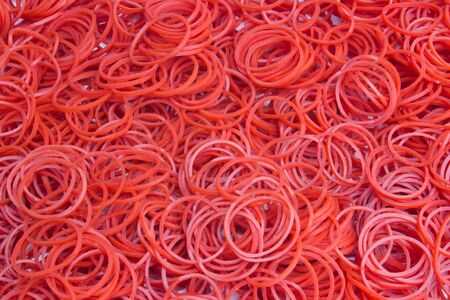 Close up red small rubber band background texture