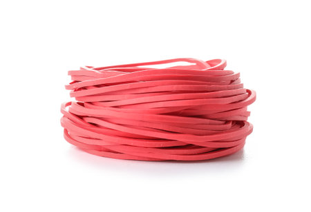 Red rubber bands on white background.
