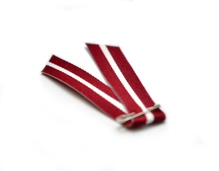 Latvia\'s flag ribbon on white background.