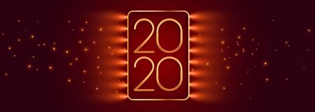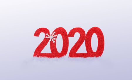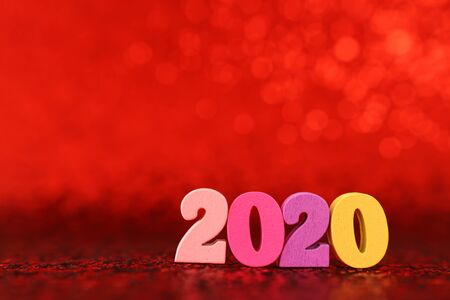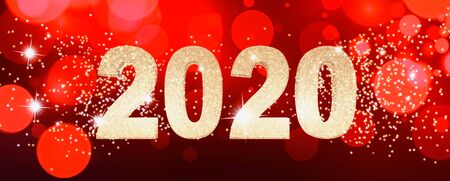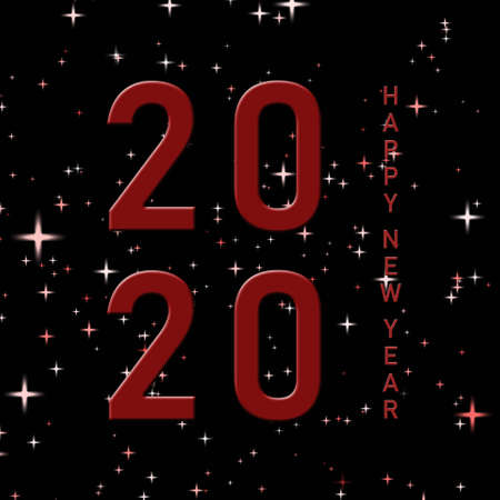 Happy New Year 2020 minimalist greeting card. Background with shining numerals. New year and Christmas card illustration on red background. Holiday illustration of red numbers 2020