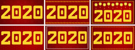 2020 gold text on red background. 2020 new year sign. vector illustration.