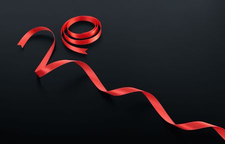 Number twenty red color over a yellow background. Anniversary. Horizontal