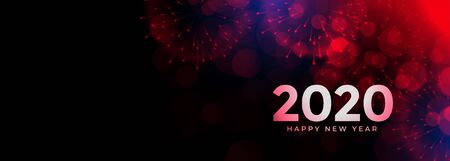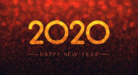 Red bokeh 2020 Happy New Year greeting card. Vector background.