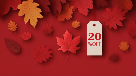 Autumn sale background with red leaves and price tag. Vector illustration.
