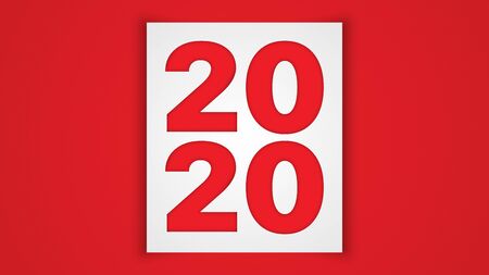 3D Illustration of 2020 in red color. Smooth beveled text with reflections. Ideal for Happy New Year 2020 Graphics.