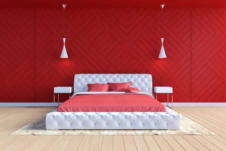 Modern contemporary bedroom interior in red and white color, 3D Rendering