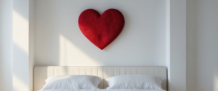 AI Generated. Red Heart Wall Decor Above White Bedroom