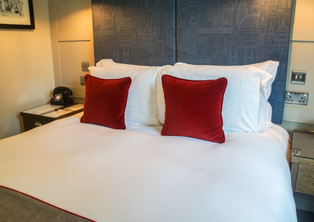 Double bed in hotel room. Accommodation