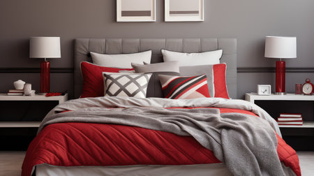Comfortable and cozy white and red bedroom