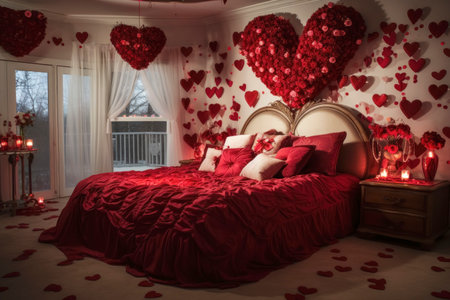 Valentines Day Themed Bedroom with Heart Decorations