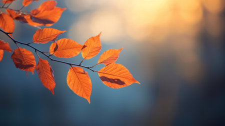Festivewebbannerfeaturingautumnleavesinwarmhueswithbokeh. Concept Fall Foliage, Warm Color Palette, Web Banner Design, Bokeh Effect, Autumn Leaves