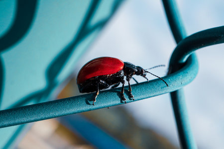 Macro photography of a little insect, Small beetle Crioceris merdigera