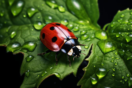 A captivating close-up image showcasing a vibrant ladybug resting on a lush green leaf. The intricate details of nature highlight the beauty and delicacy of this tiny insect.