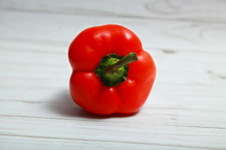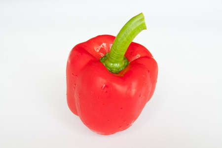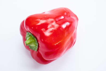 Red bell pepper on a white background. Red fresh pepper. Close up.