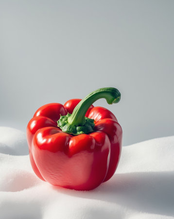 Capture the essence of freshness with this vibrant red bell pepper, a perfect ingredient for culinary inspiration and healthy living.
