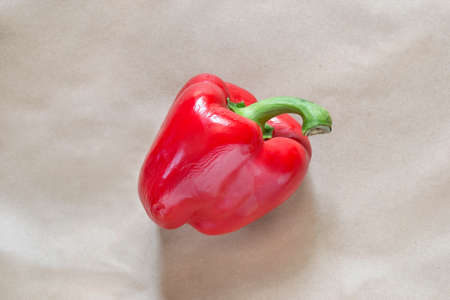 Sweet red pepper on a yellow background in the kitchen. Big vegetable for cooking