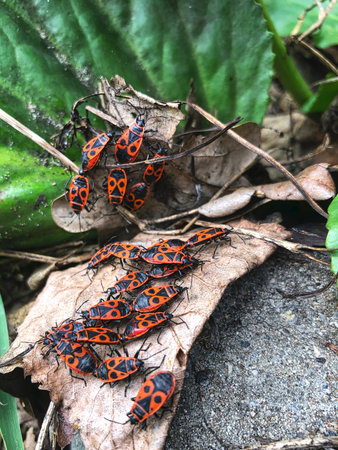 Firebug invasion in the park during spring