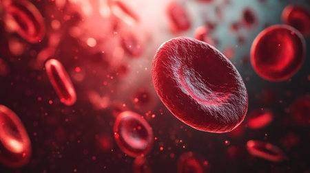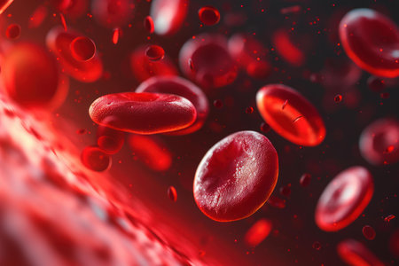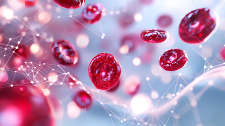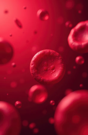 Stunning and depicting detailedion of red blood cells gracefully flowing through the bloodstream, showing their intricate structure and dynamic motion
