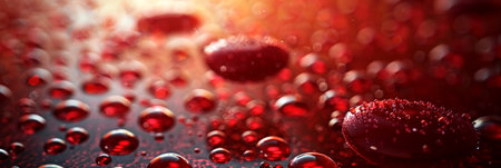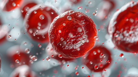 This striking image showcases red blood cells floating in a fluid medium, highlighted by bubbles and vivid colors, symbolizing vitality and health in the human body.