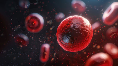 Red blood cells float in a dark background showcasing their unique disc shape and role in oxygen transport throughout the body.