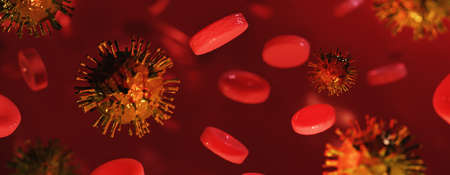 3D Illustration of microscopic blood and virus cell.