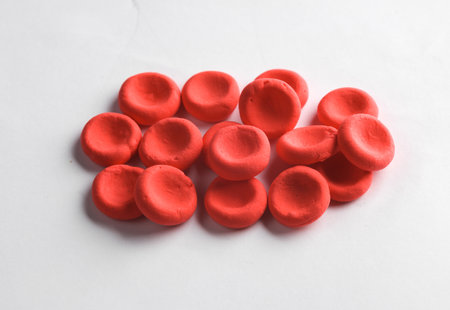 Red blood cells model made from plasticine on white background