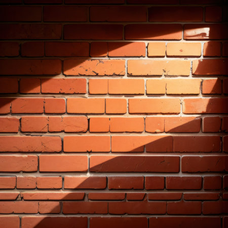 This close-up image showcases a textured red brick wall that is ideal for architecture, construction, and interior design projects with its unique shading and depth.