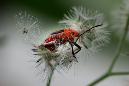 Red Hemiptera on weed white flower