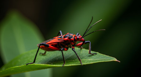 red bug at the side position is resting on the leaf