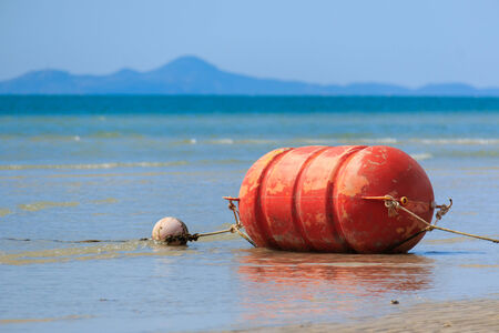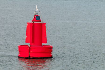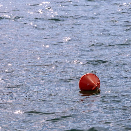 Red buoy on the sea. Selective focus and shallow depth of field.