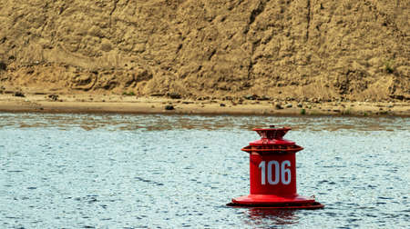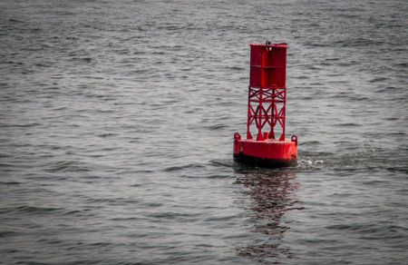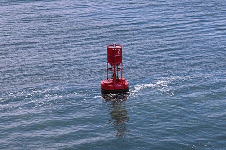 Red maritime navigation buoy. Buoy located in the Upper Bay of New York, USA.