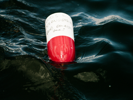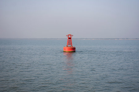 A buoy floats on the ocean, sending a maritime warning to ensure safety at sea, guiding navigation through the water for every vessel in the vast marine world.