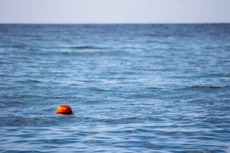 Orange buoy floating in the sea at sunset. Conceptual image.