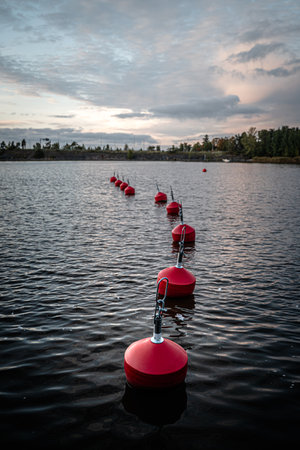 Flashing red buoy on the water surface of lake Saimaa in the Finnish city of Imatra.
