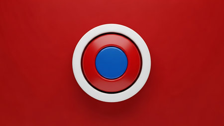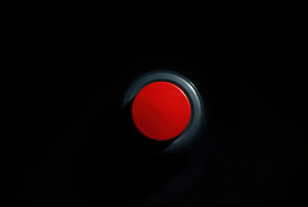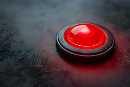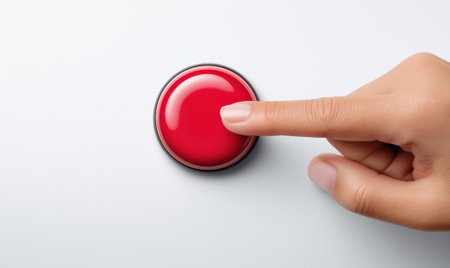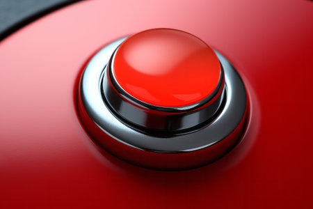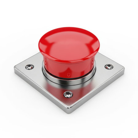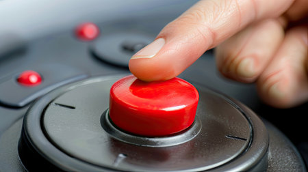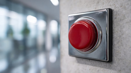 A close-up of a bright red button, used for emergency alerts and essential safety functions. Generative AI