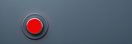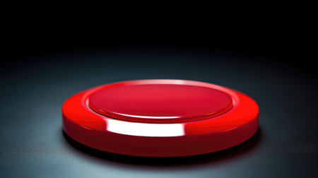 A striking glossy red button prominently displayed against a dark surface, symbolizing alertness and action in a minimalist design ideal for technology themes.