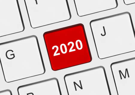 A close-up view displays a blue, illuminated button bearing the inscription 2020. The composition highlights a circular design within a metallic frame, set against a dark, textured background. The lighting suggests an interior setting, possibly automotive, suitable for various commercial uses.