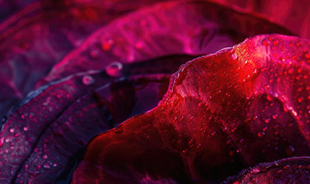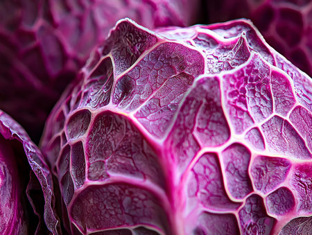 Delve into the fascinating layers of red cabbage as the macro view reveals a mesmerizing labyrinth of color and texture, showcasing nature's artwork in extreme detail.