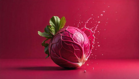 Red Cabbage with Leaves and Splashing Liquid Still Life