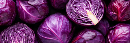 Vibrant Purple Cut Cabbages on Colorful Background AI Generated